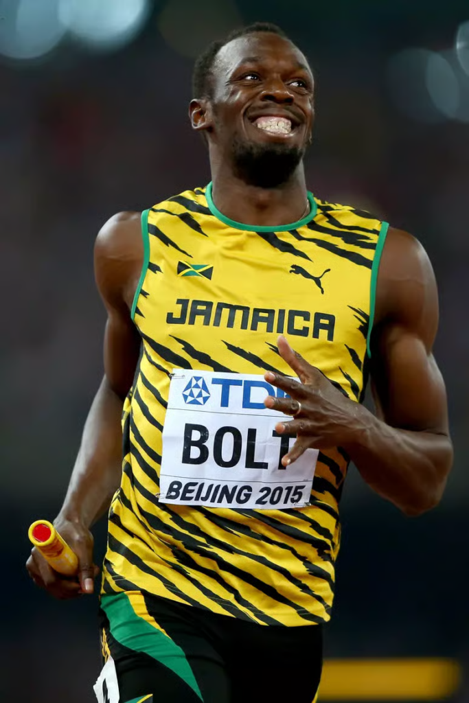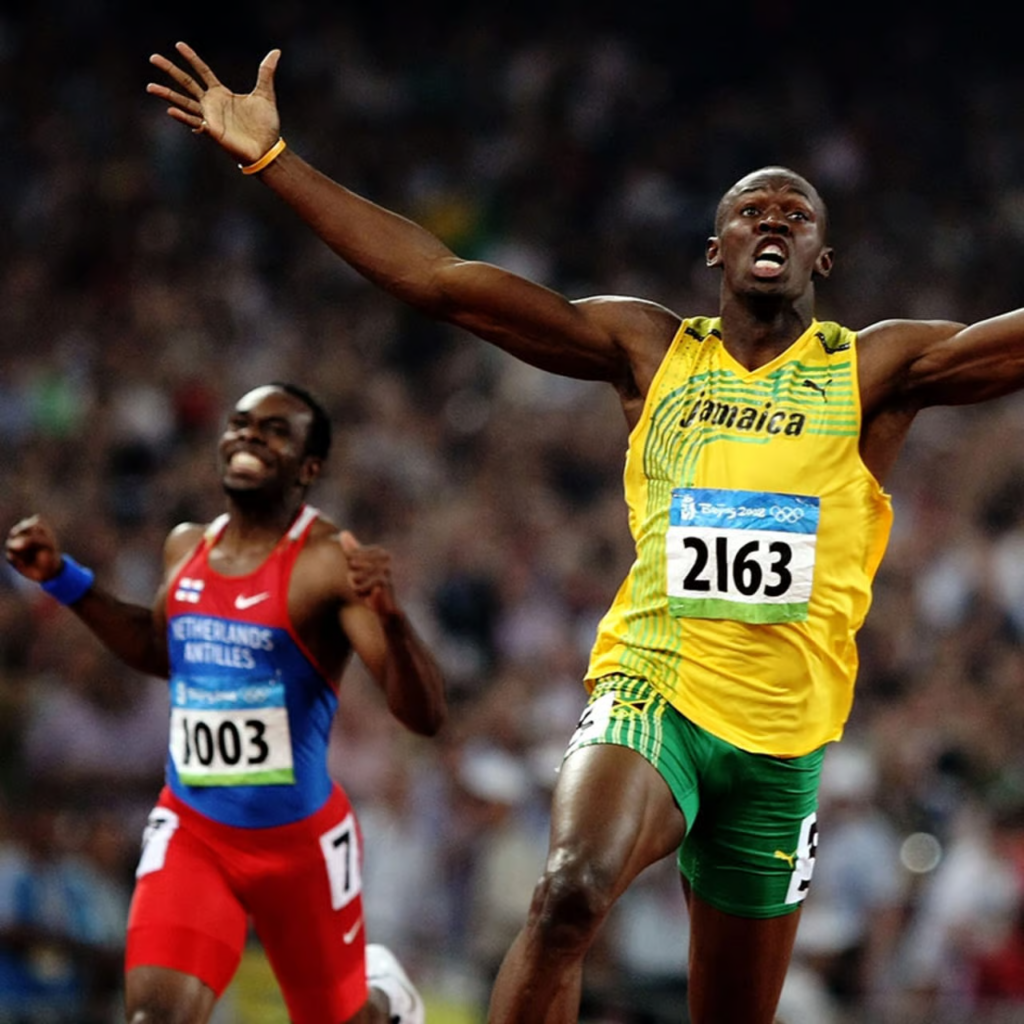 Usain Bolt transcendeu o esporte. Ele não corria apenas contra adversários — corria para divertir o público. Suas danças, caretas e o icônico gesto do “raio” o transformaram em um personagem pop, adorado no mundo todo.