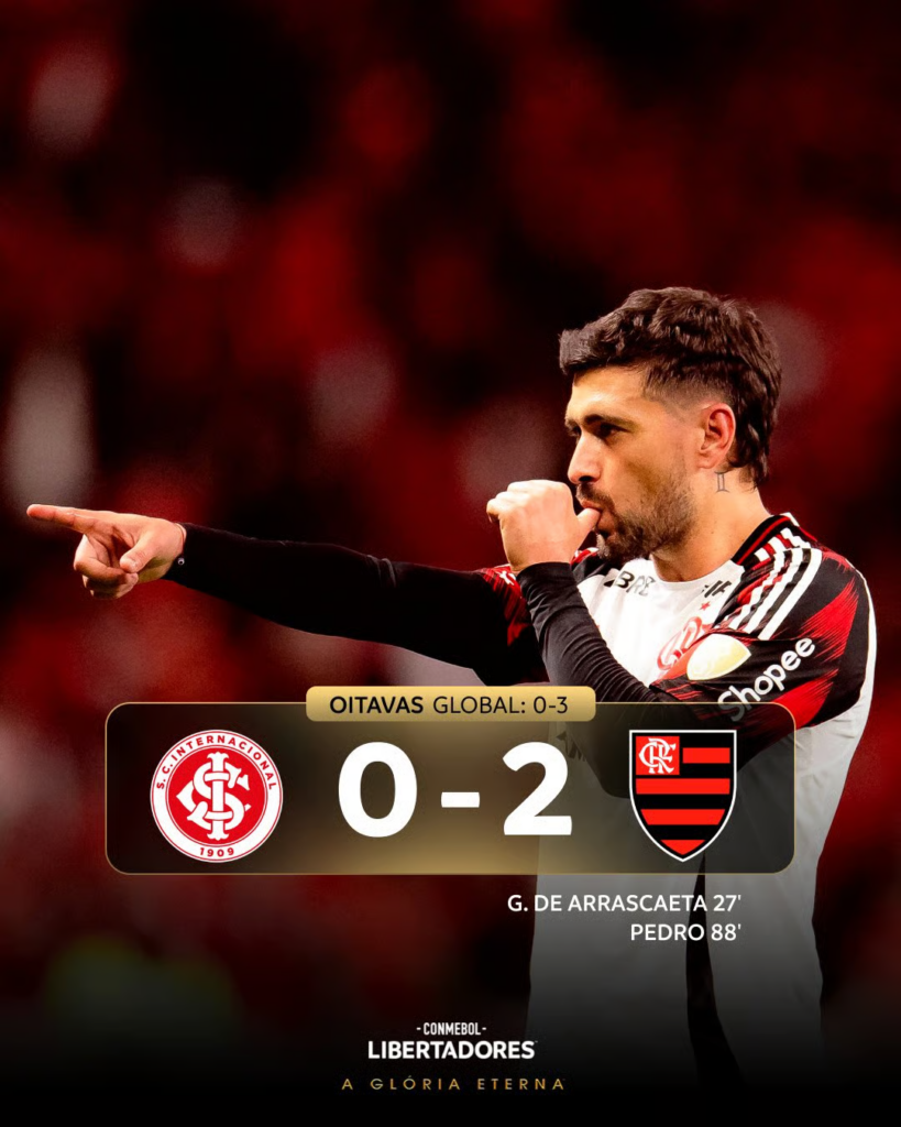 O Fla agora enfrenta o Estudiantes-ARG nas quartas e é o único 2º colocado que conseguiu avançar na Liberta.