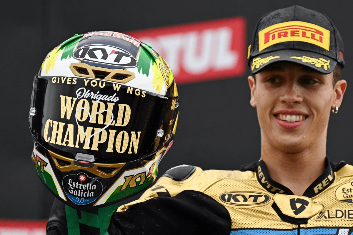 O título veio na última etapa do campeonato, o GP de Valência, na Espanha. Com 24 pontos de vantagem sobre o espanhol Manuel González e 25 ainda em disputa, o brazuca precisava terminar no TOP-14 para confirmar a conquista.